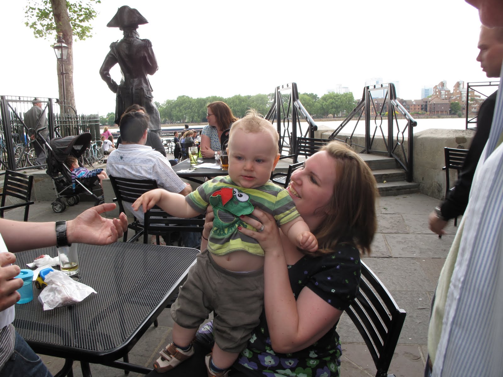 Robin's here! John has 4 younger brothers and Robin is brother #2. We are so glad he is here. We plan to leave tomorrow (Monday) for four nights in Paris but today we are taking Robin to places he hasn't been yet. He comes to London frequently on business but never as a tourist so we are going to do touristy things! We started out with a cruise on the Thames. John was really intent on taking Robin to see the Thames Barrier. This is the second largest flood barrier in the world (the first is in the Netherlands) and would prevent London from being flooded by exceptionally high tides. The barrier parts will remind you of the opera house in Sydney. You'll know why in a few paragraphs why we don't have a picture of it!